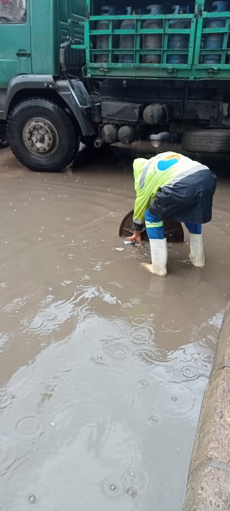 وأشار إلي استمرار تمركز سيارات ومعدات الشركة في جميع أنحاء المحافظة للتعامل مع تجمعات مياه الأمطار فور حدوثها، وإستمرار أعمال تطهير الشنايش والبيارات لرفع العبئ عن الشنايش والمحطات أثناء الأمطار.