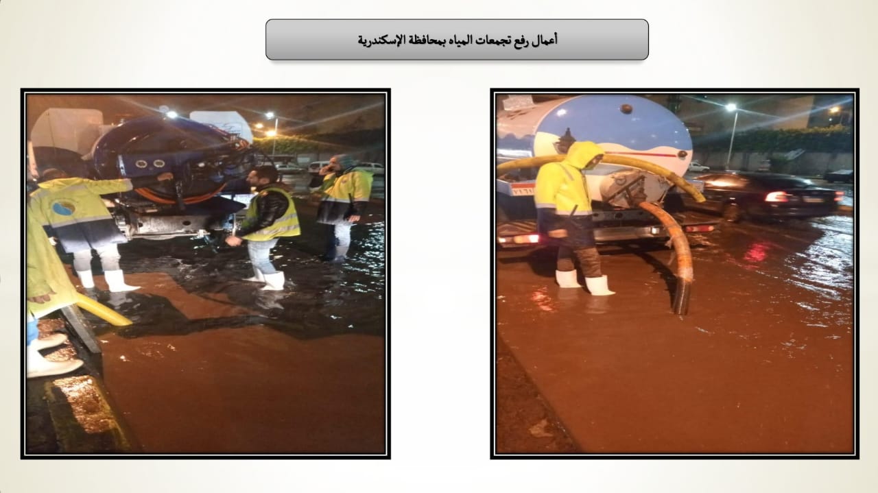 وفي هذا السياق أشار التقرير الذي تلقاه الوزير منذ دقائق إلي تعرض محافظة الاسكندرية إلي أمطار متوسطة إلي غزيرة علي عدة مناطق منها حي العامرية أول وثان وحي وسط والطريق الساحلي ومدينة برج العرب وحي المنتزة والعجمي، مما أدي لحدوث تجمعات مياه وتم رفعها باستخدام معدات الوحدات المحلية بالتنسيق مع معدات الشركة القابضة لمياه الشرب والصرف الصحي.