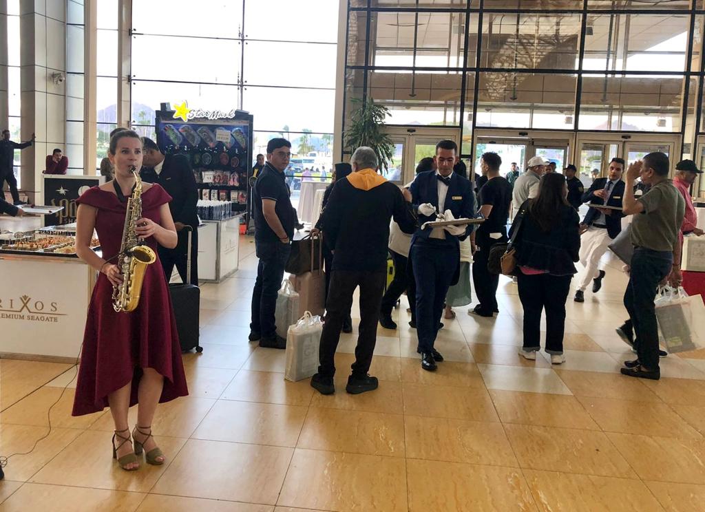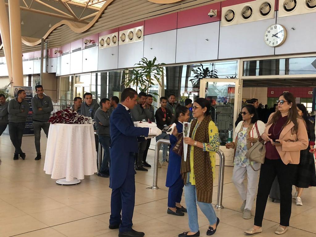 كما كان في استقبالهم، اللواء نبيل الملاح مدير مطار شرم الشيخ الدولي، والدكتور إسلام نبيل المشرف علي مكتب الهيئة المصرية العامة للتنشيط السياحي بجنوب سيناء، الذي قام بتوزيع الهدايا التذكارية لهم والنشرات الدعائية لتعريفهم بالمقصد السياحي المصري ومقوماته ومنتجاته وأنماطه السياحية المتعددة.