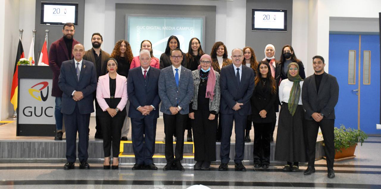 جاء ذلك بحضور، اللواء خالد فودة محافظ جنوب سيناء، والدكتور أشرف منصور، رئيس مجلس أمناء الجامعة الألمانية في القاهرة، والدكتور ياسر حجازي، رئيس الجامعة الألمانية في القاهرة، والدكتورة إيناس سمير، نائب محافظ جنوب سيناء، وعمداء الكليات، ونخبة من قيادات الجامعة ومحافظة جنوب سيناء.