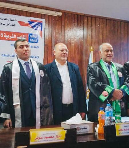 كما ثمن الدكتور حسان النعماني خلال كلمته، اجتهاد الباحث وتغلبه على الصعاب التي واجهته بالعزيمة والصبر من أجل ان يحقق هدفه، حيث تم منحه درجة الماجستير بتقدير جيد جدًا، موضحًا ان هيئة المناقشة والحكم علي الرسالة ضمت كلًا من الدكتور محمد عبد الرحيم محمد أستاذ الشريعة الإسلامية بكلية دار العلوم جامعة المنيا (مشرفا ورئيسًا)، الدكتور إبراهيم رشاد صبري استاذ الدراسات الإسلامية بكلية الآداب جامعة جنوب الوادي (مناقشًا)، الدكتورة آمال محمود عوض أستاذ الدراسات الإسلامية بكلية الآداب بجامعة سوهاج.