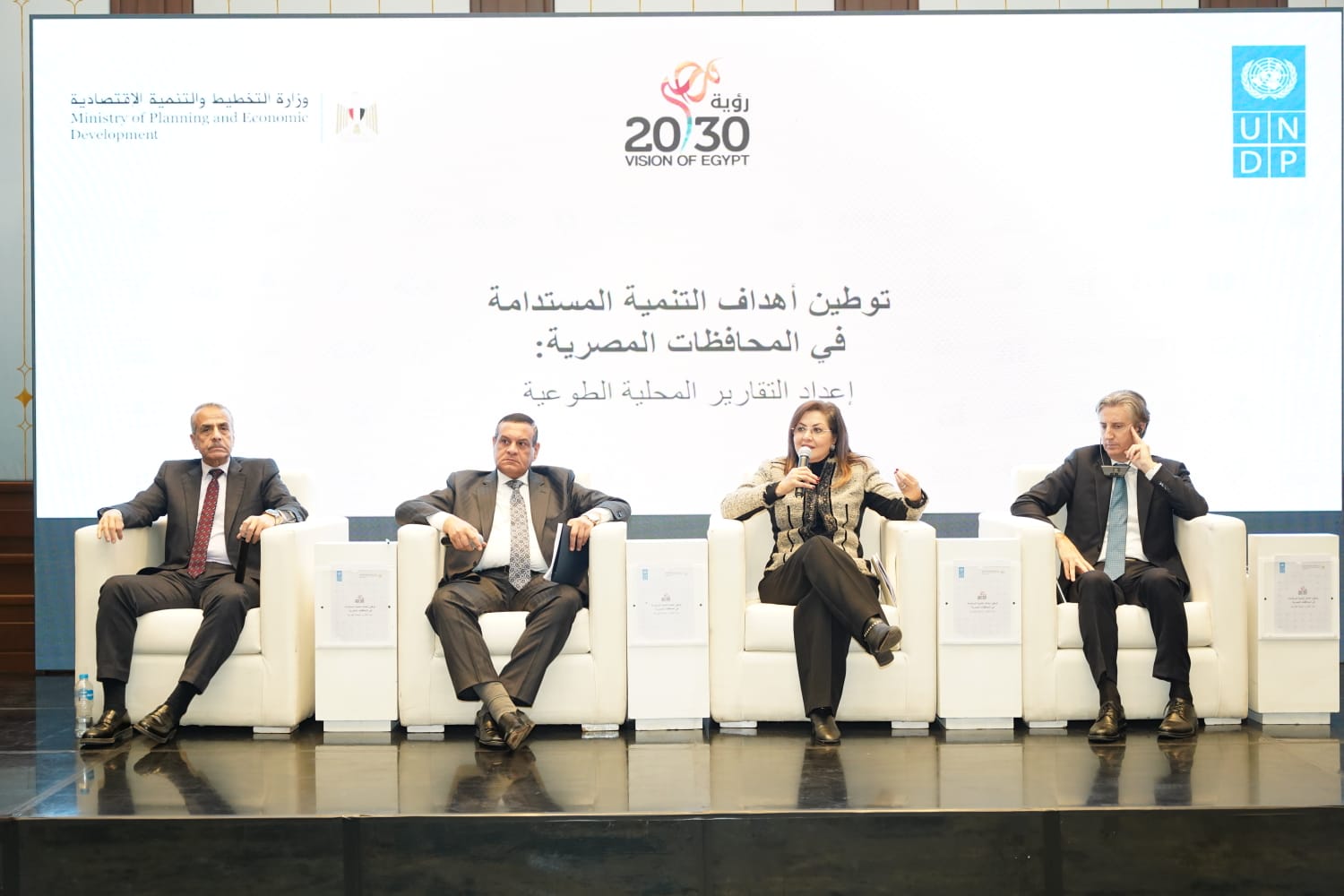 جاء ذلك بحضور د.هالة السعيد وزيرة التخطيط والتنمية الاقتصادية، اللواء هشام آمنة وزير التنمية المحلية، أليساندرو فراكاستي الممثل المقيم لبرنامج الأمم المتحدة الإنمائي في مصر، اللواء خيرت بركات رئيس الجهاز المركزي للتعبئة العامة والإحصاء، د.أحمد.كمالي نائب وزيرة التخطيط، د.منى عصام مساعد الوزيرة لشئون التنمية المستدامة، وبحضور عدد من المحافظين، وعددًا من قيادات الوزارتين، ممثلي مؤسسات محلية ودولية.