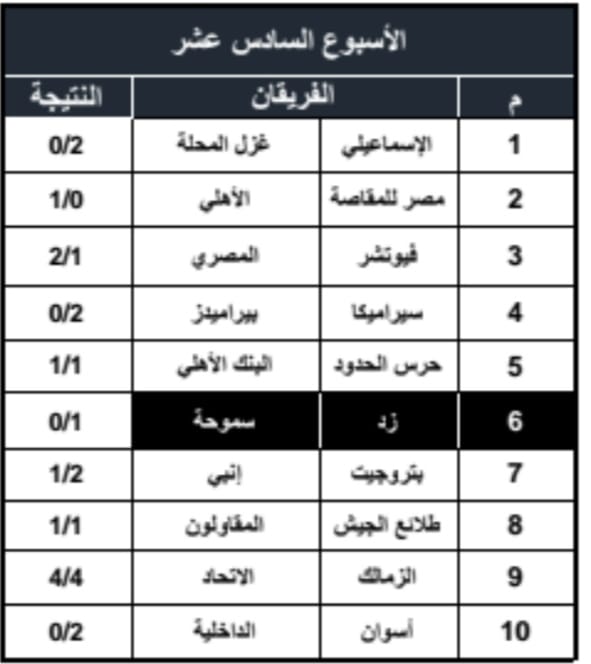 نتائج الجولة الـ 16 لدوري الجمهورية للشباب 2003