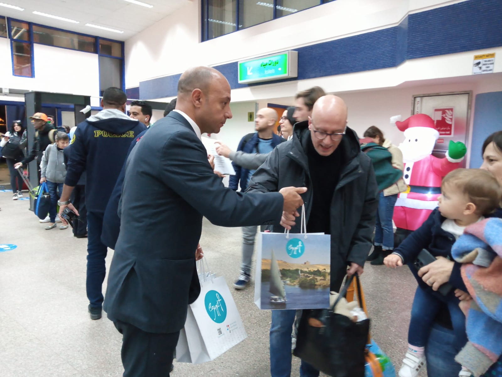 وقام أحمد الدع المُشرف على مكتب الهيئة المصرية العامة للتنشيط السياحي بمحافظة البحر الأحمر، وبعض أعضاء المكتب باستقبال هذه الرحلة، حيث قاموا بالترحيب بالسائحين، وتقديم عدد من المواد والنشرات الترويجية باللغة الإيطالية عن المقاصد السياحية المصرية المختلفة، ومجموعة من الهدايا التذكارية بما يساهم في تعريفهم بالمقومات والمنتجات والأنماط السياحية المتنوعة للمقاصد المصرية.