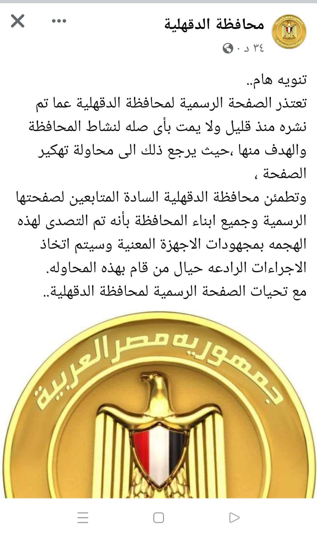 التفاصيل الكاملة لاختراق الصفحة الرسمية لمحافظة الدقهلية واستردادها (صور)