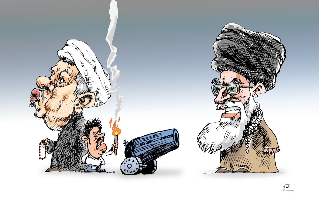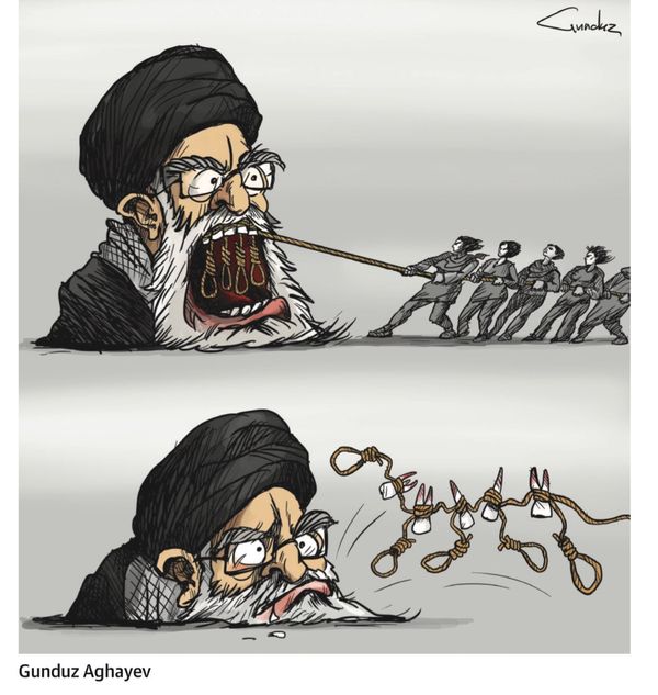 وصورت الرسوم المرشد، الذي يعتبر الشخصية الأعلى في إيران، وهو يُواجه من قبل النساء والفتيات. ففي إحدى اللوحات تبدو الصدمة على ملامحه فيما تشعل فتاة صغيرة النار في لحيته، وفي أخرى تطارده فتاة وهي تمتطي حصانًا فيما يفر هو مذعورا، وكذلك أظهرت الرسوم خامنئي وهو يتعرض للشنق بشعر النساء المحتجات.