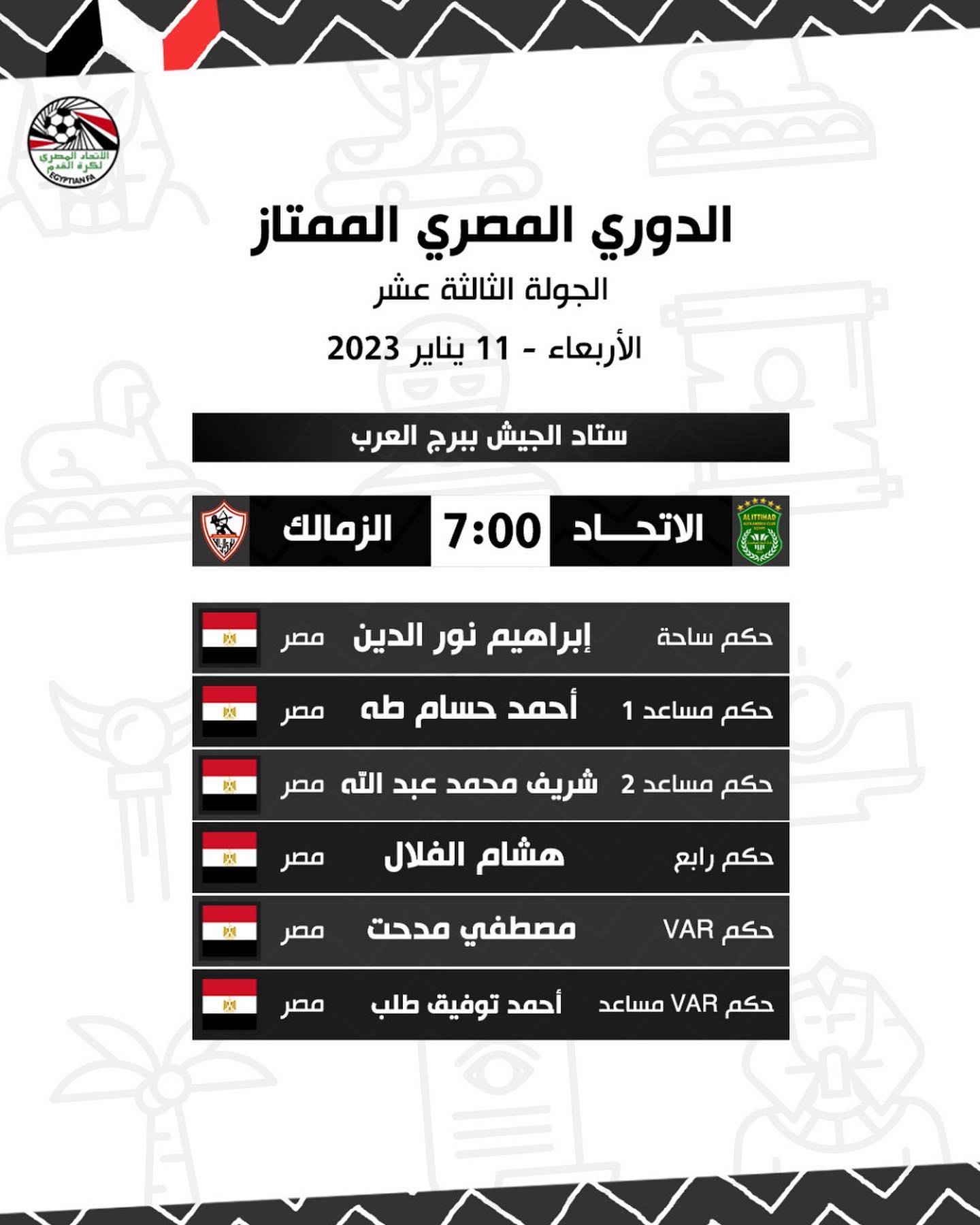 الزمالك ضد الاتحاد السكندري في الدوري الممتاز غدا 11 يناير في تمام الساعة السابعة مساء.