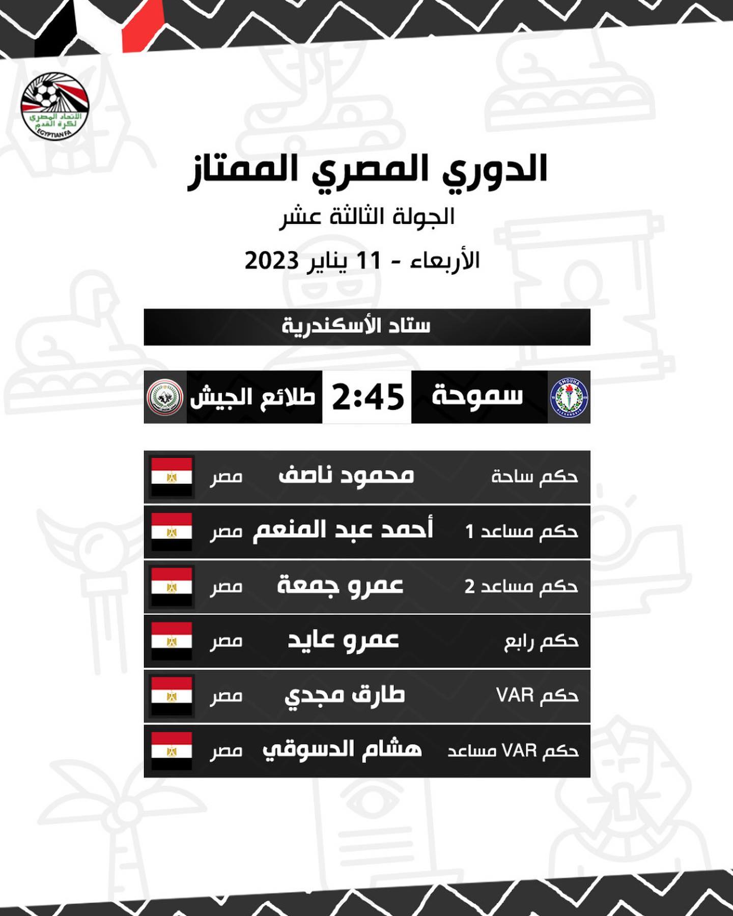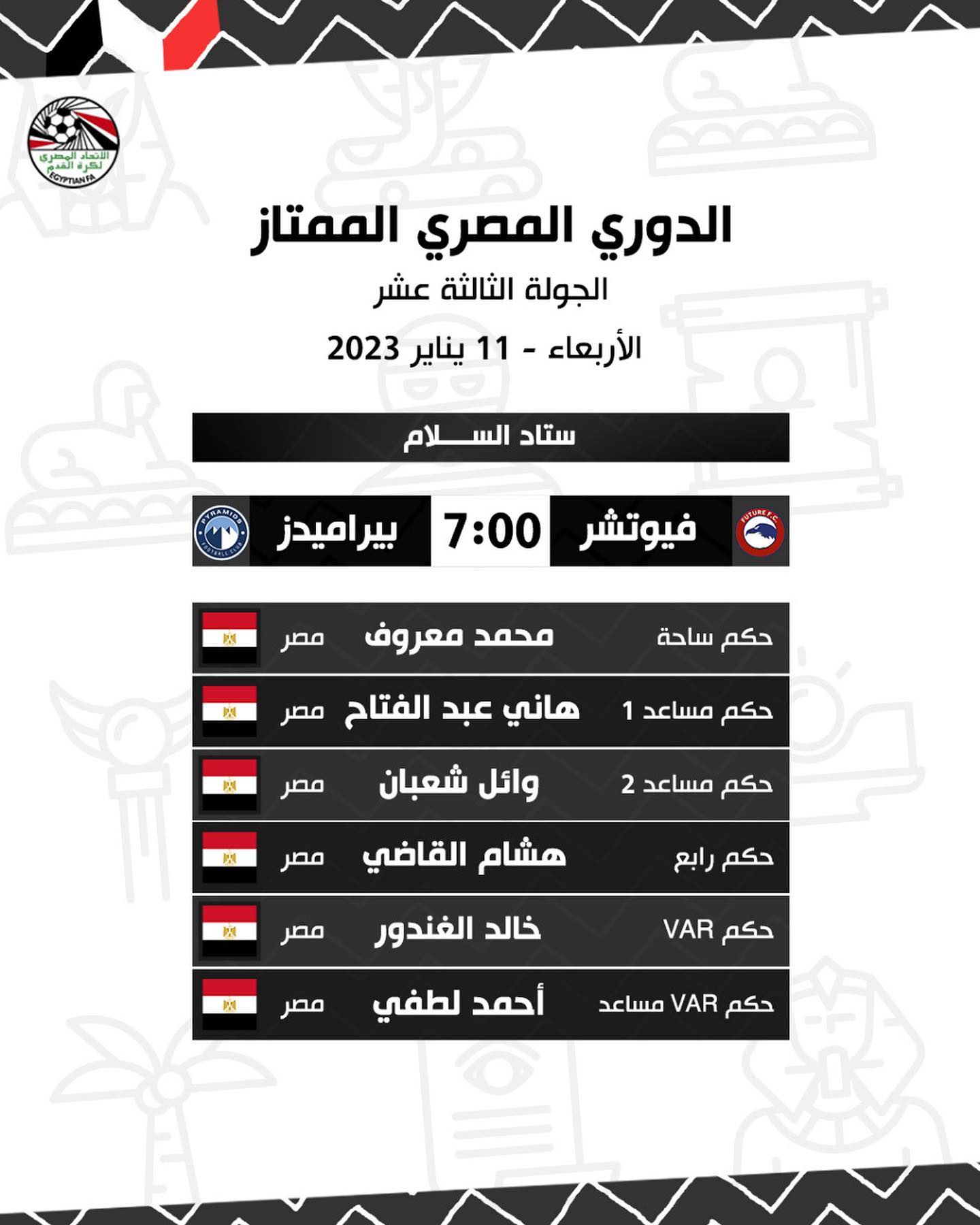 الدوري المصري، أعلنت لجنة الحكام الرئيسية بـاتحاد الكرة حكام مباريات غدا الأربعاء، ضمن مواجهات الجولة الثالثة عشرة من الدوري المصري الممتاز، على النحو التالي: