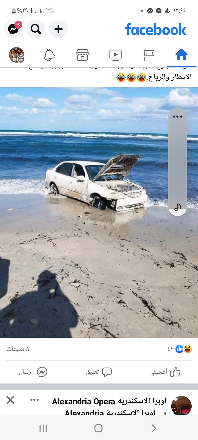 كان رواد موقع التواصل الاجتماعي فيس بوك قد تداولوا صورة لسيارة جري سرقة محتوياتها وقيل انها تقاذفتها الرياح والامواج علي شواطيء الإسكندرية بعد أن سقطت في مياه البحر دون توضيح مكانها، وسط تعليقات ساخره من الصورة.