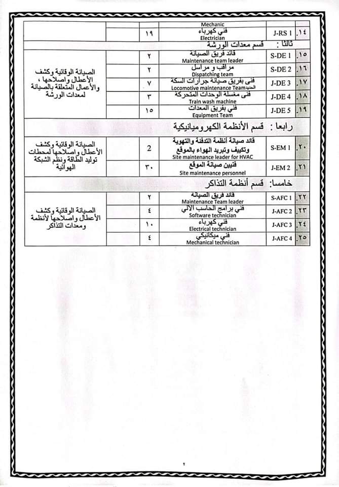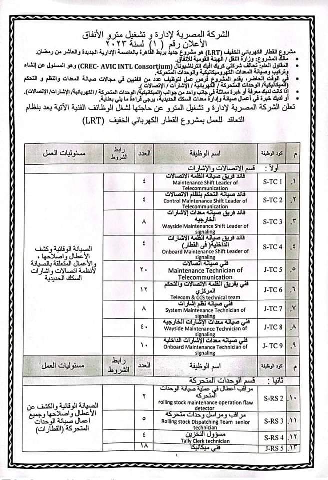 وجاء بالإعلان أن الهيئة بحاجة إلى فنيي صيانة معدات ونظم وتحكم كهربائي وإشارات ووحدات متحركة، للعمل في مترو الأنفاق وتم التأكيد على التقدم للوظيفة من خلال الرابط الخاص بشركة المترو أو هيئة الأنفاق.