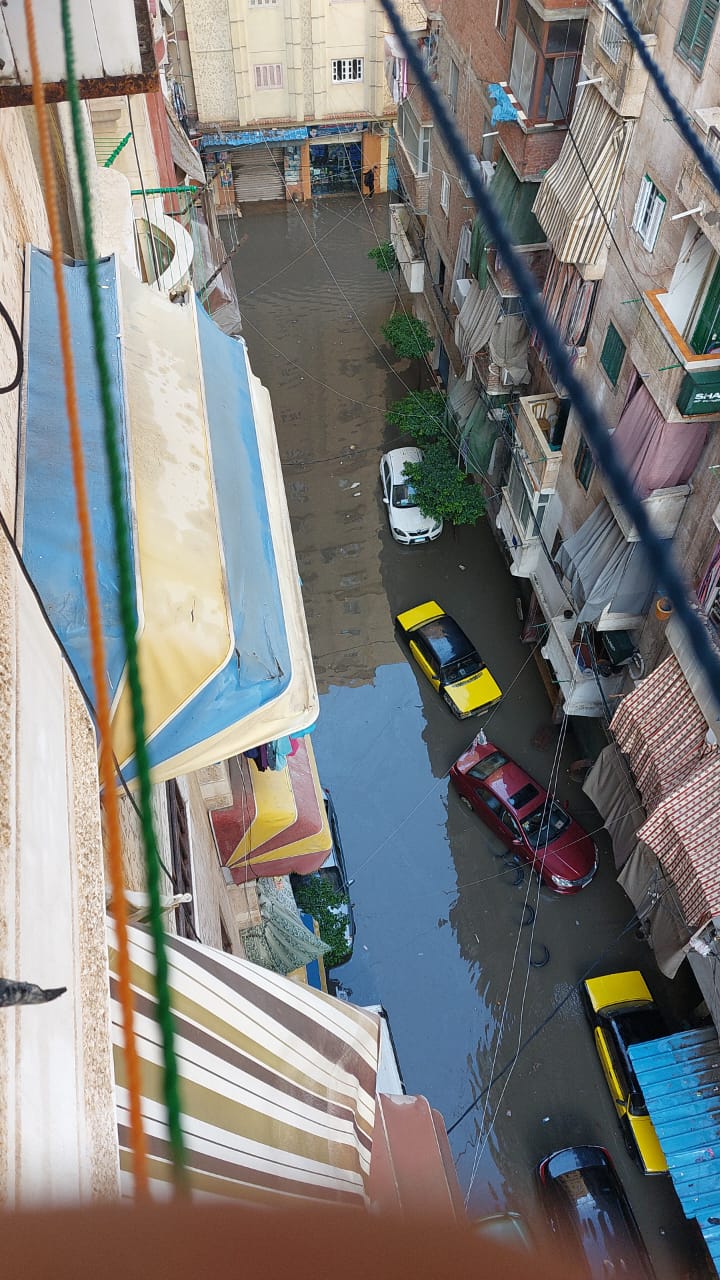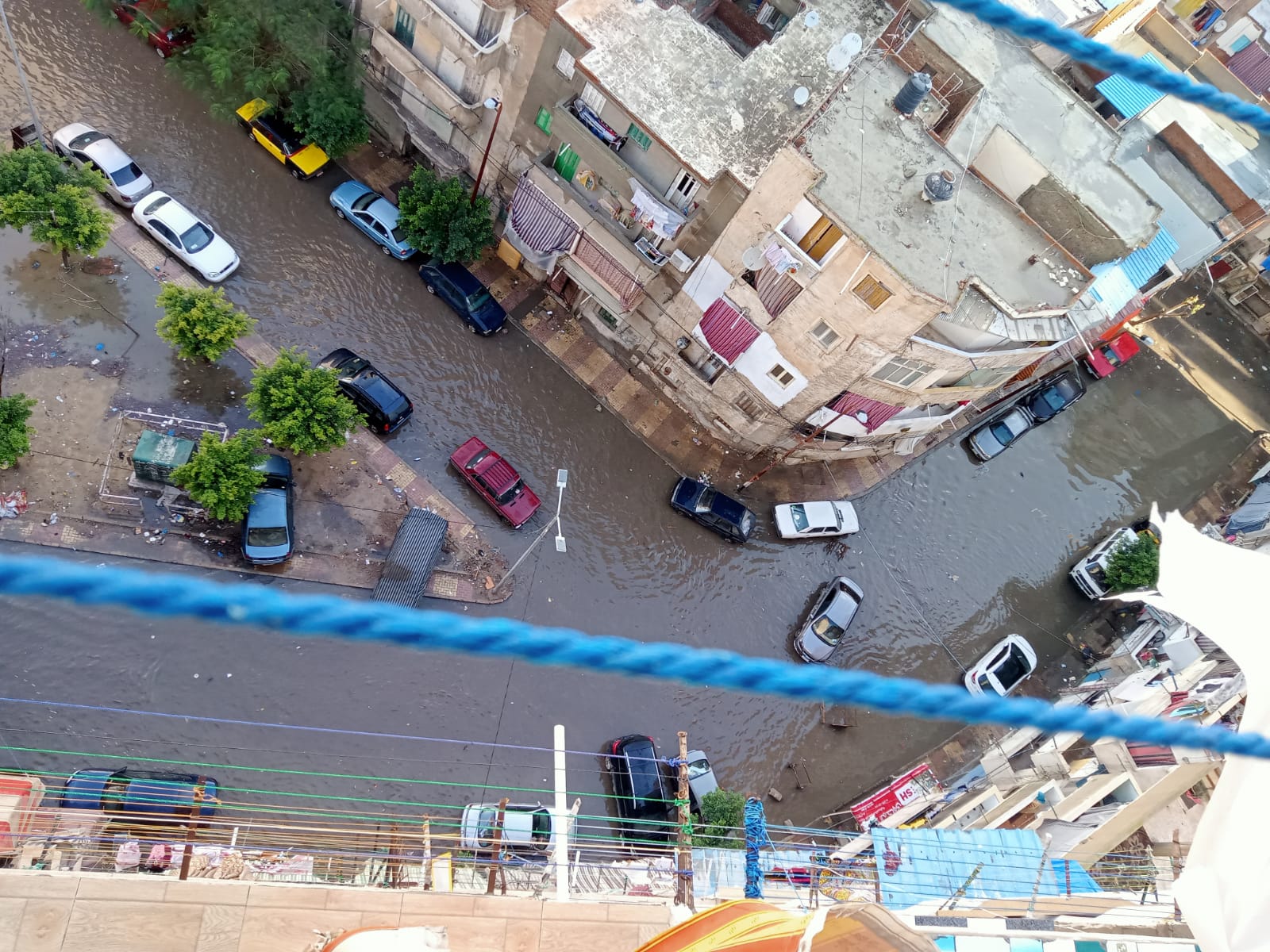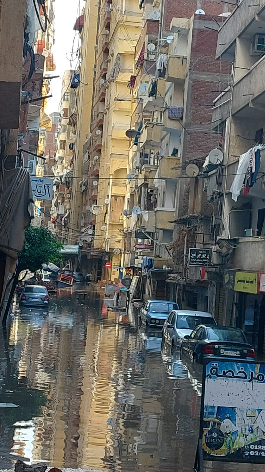 وغرق حي المنتزه أول في مياه الأمطار التي أغرقت المدينة منذ الصباح الباكر وادت لتعطل الحياة في المدينة بسبب الأمطار الغزيرة وغرق الشوارع ونفق سيدي بشر بالكامل