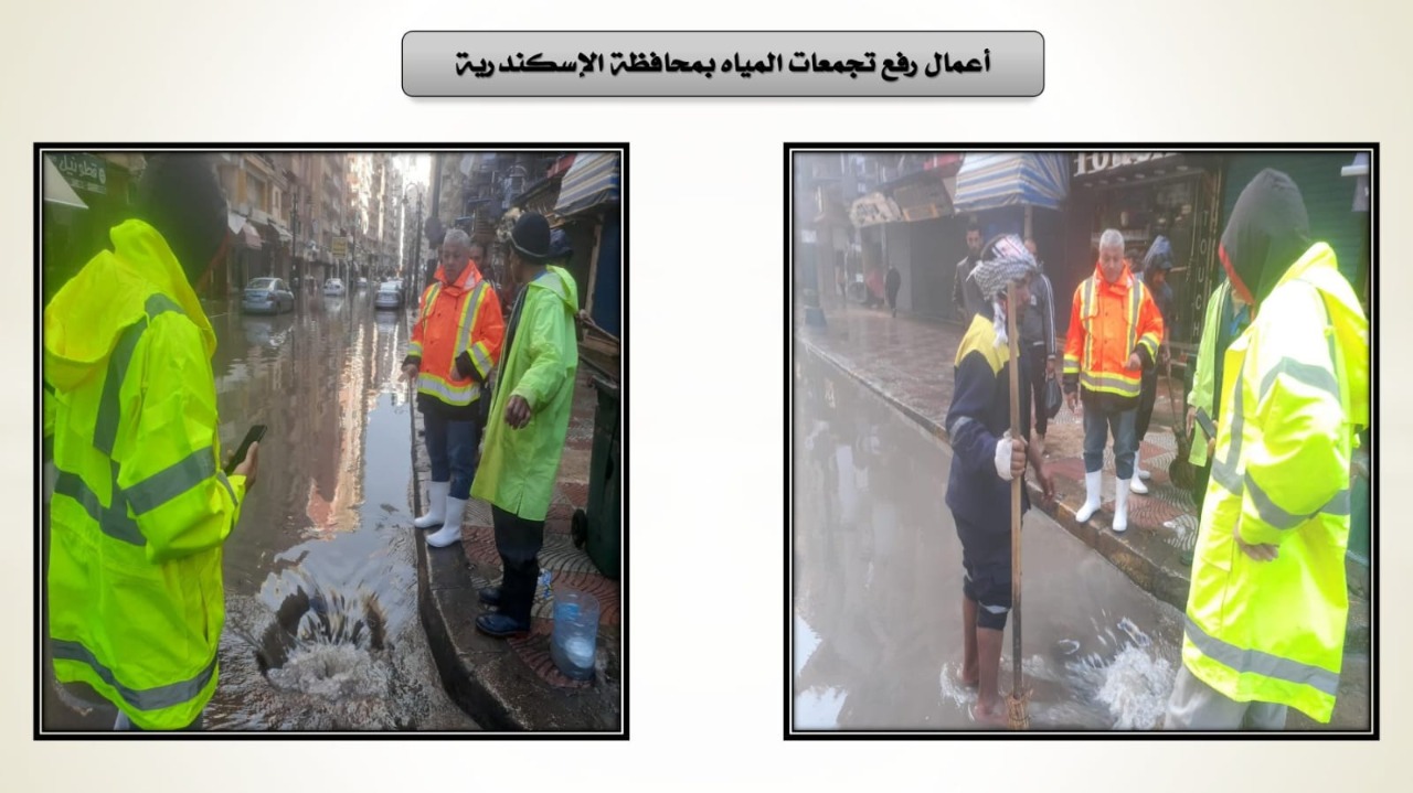 كما أشار التقرير الى سقوط أمطار متوسطة بمحافظة الإسكندرية على أحياء شرق والمنتزه أول وثان والجمرك والعجمى والعامرية، وأسفرت عن وجود تجمعات فى عدة مناطق، ويتم حاليا رفعها بالتنسيق مع معدات الشركة القابضة لمياه الشرب والصرف الصحي وشركة البترول، وتم تعطيل الدراسة بالاسكندرية وعمل ثلاث بدالات أرضية لصرف المياه على البحر وتخفيف الضغط على الشبكات، مشيرا إلى استقرار الحالة العامة فى باقى المحافظات، مع وجود سحب ورياح.
