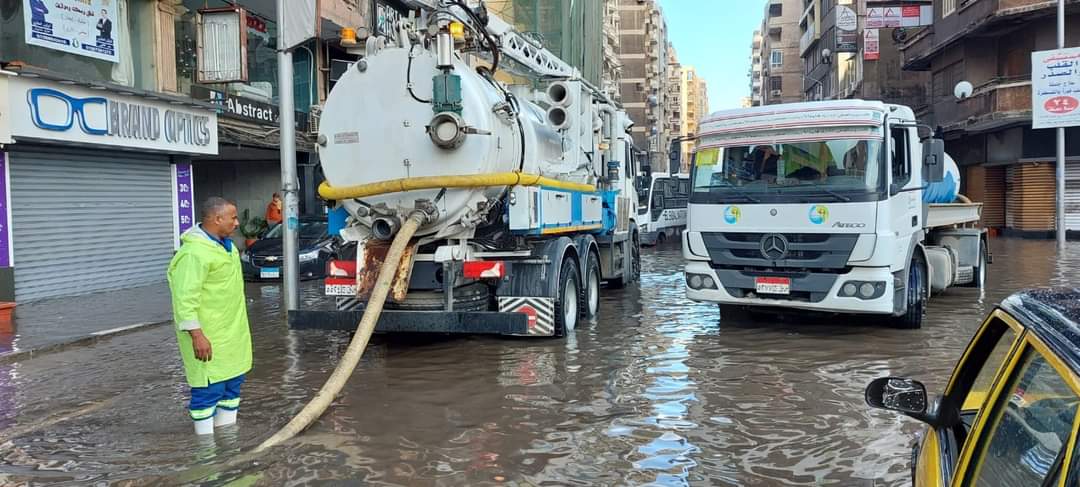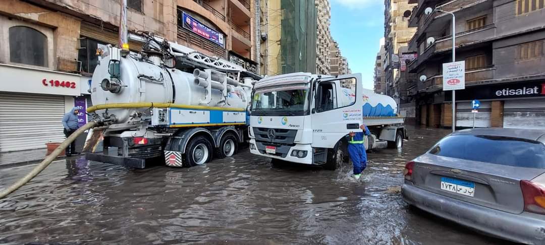 رئيس صرف الإسكندرية يتابع رفع تجمعات المياه بـ 150 سيارة (صور)