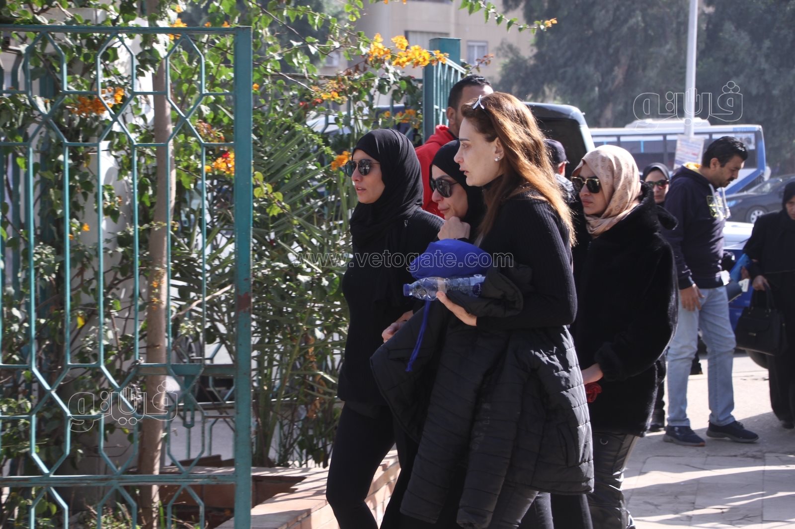 الحزن يسيطر على ريم البارودي خلال انتظارها صلاة جنازة والدها وزينة تساندها (صور)
