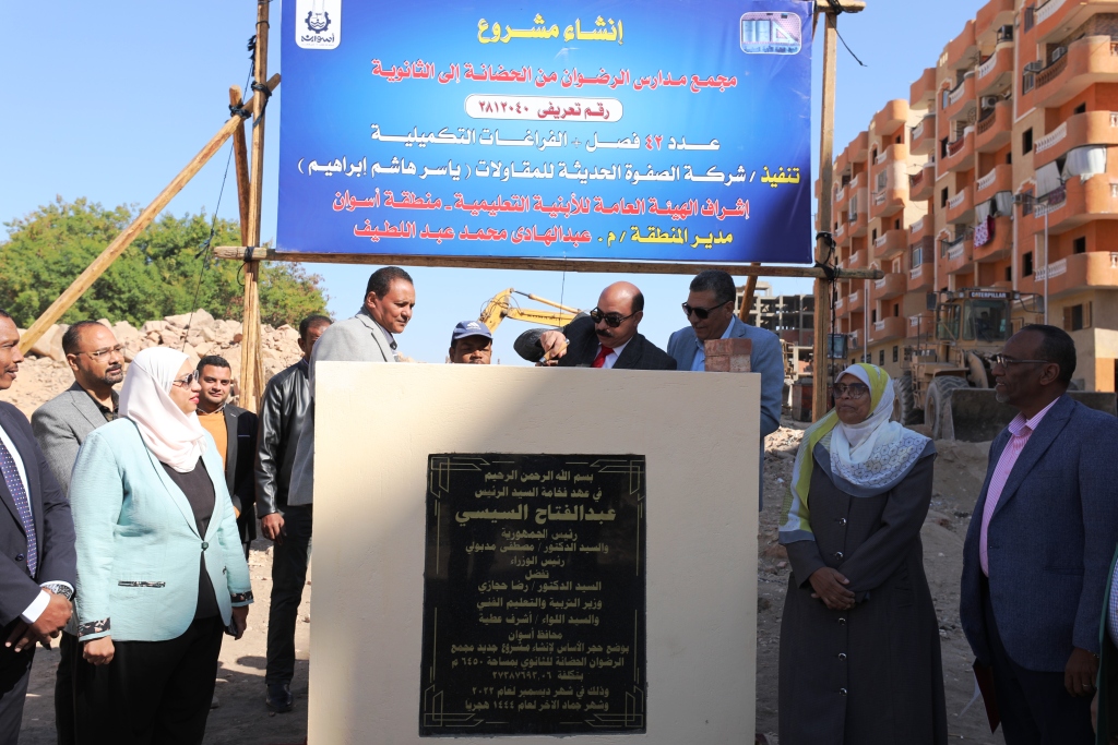 محافظ أسوان يضع حجر الأساس لمشروع إنشاء مجمع الرضوان (صور)