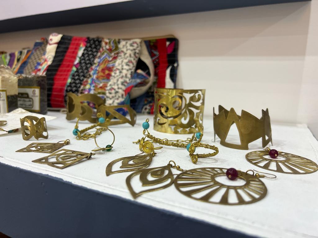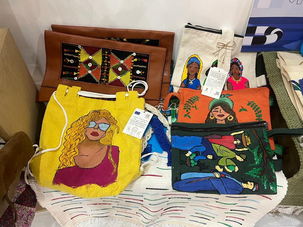 تضمنت المنتجات كلاتش وشال وشنط ومعلقات مصنوعة من المكرمية وعرائس قماش وسجاد.