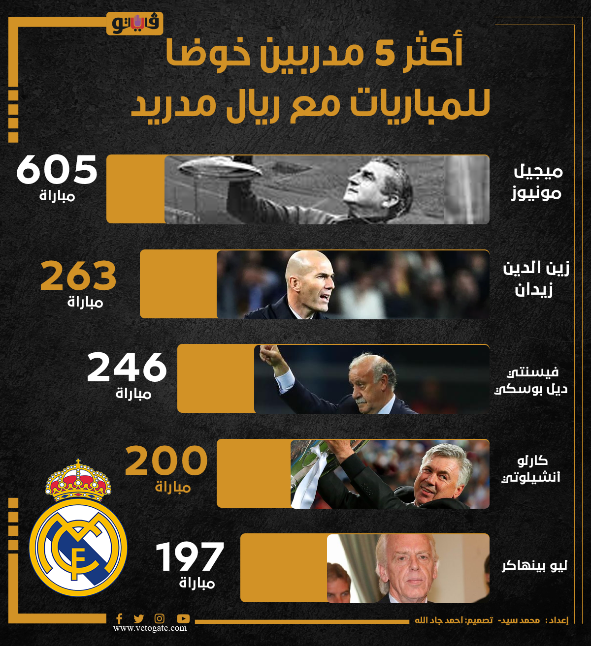 أكثر 5 مدربين خوضا للمباريات مع ريال مدريد (إنفوجراف) الخميس 12/يناير/2023 - 07:10 م 1/12/2023 7:10:36 PM كارلو أنشيلوتي، فيتو محمد سيد شارك طباعة 18 حجم الخط شارك طباعة ريال مدريد كارلو انشيلوتي زين الدين زيدان فيسنتي ديل بوسكي ليو بينهاكر ميجيل مونيوز