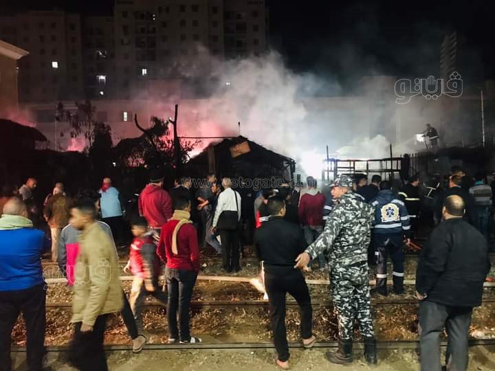 وأظهرت لقطات متداولة حجم الحريق، واندلاع الحريق وارتفاع ألسنة اللهب في موقع الحريق بمحيط السكة الحديد.