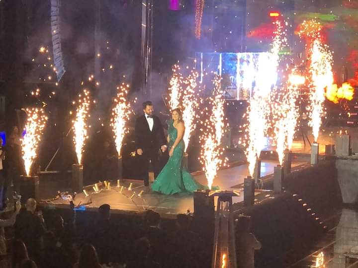 واستقبلت سلطات مطار شرم الشيخ الدولي الطائرة بتقليد رش المياة، والترحيب بالركاب والضيوف والعروسين وتقديم الورود وعزف الموسيقي، تعبيرًا عن حفاوة الاستقبال.