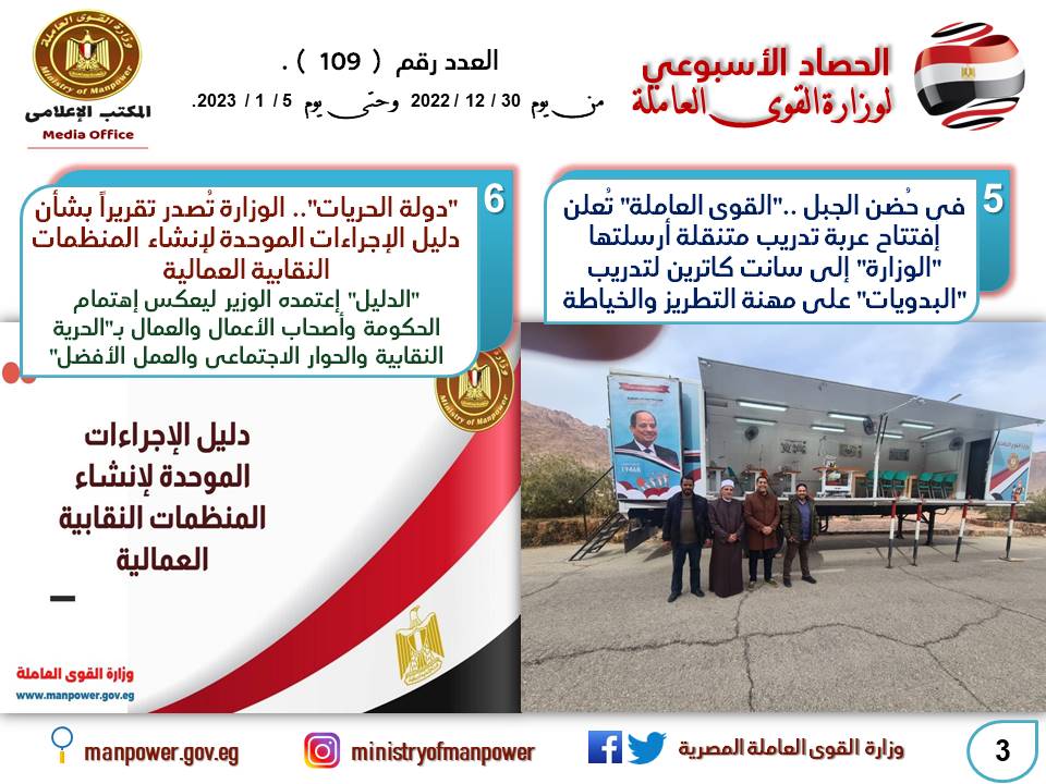 واصدر المركز الاعلامي لوزارة القوى العاملة تقريرًا بالإنفوجراف،بشأن محتويات دليل الإجراءات الموحدة لإنشاء المنظمات النقابية العمالية،الذي إعتمده وزير القوى العاملة حسن شحاتة يوم12-10-2022،بالقرار رقم 227 لسنة 2022،اثناء وجود وفد رفيع المستوى من منظمة العمل الدولية في القاهرة،كدليل من أدوات الاستدامة التي أحرزها مشروع تعزيزعلاقات العمل ومؤسساتها في مصر الذي تنفذه الدولة المصرية مع "منظمة العمل"التابعة للأمم المتحدة،كمشروع تنموي هام يعكس إهتمام المكونات الثلاثة لأطراف العمل"حكومة وأصحاب العمل وعمال"على حد سواء بـ " الحرية النقابية – والحوار الاجتماعي – والعمل الأفضل "وأثر ذلك الايجابي على الاقتصاد المصري بشكل عام،ويؤكد التقرير أن إعلان الوزير شحاتة وقتها عن تفعيل دور اللجنة المشكلة لدراسة شكاوى المنظمات النقابية العمالية،وتوجيهه الشكر والتقدير لمنظمة العمل الدولية على دورها في دعم المشاريع التنموية،وتعزيز علاقات العمل،ويُبَيِن التعاون المستمر والإيجابي مع منظمة العمل الدولية التي وقعت معها مصر منذ تأسيسها من أكثر من 100 عام على 64 إتفاقية عمل دولية،تترجمها الدولة في كافة تشريعاتها ذات الصلة بملف العمل وتطبيق معايير العمل الدولية على أرض الواقع.
