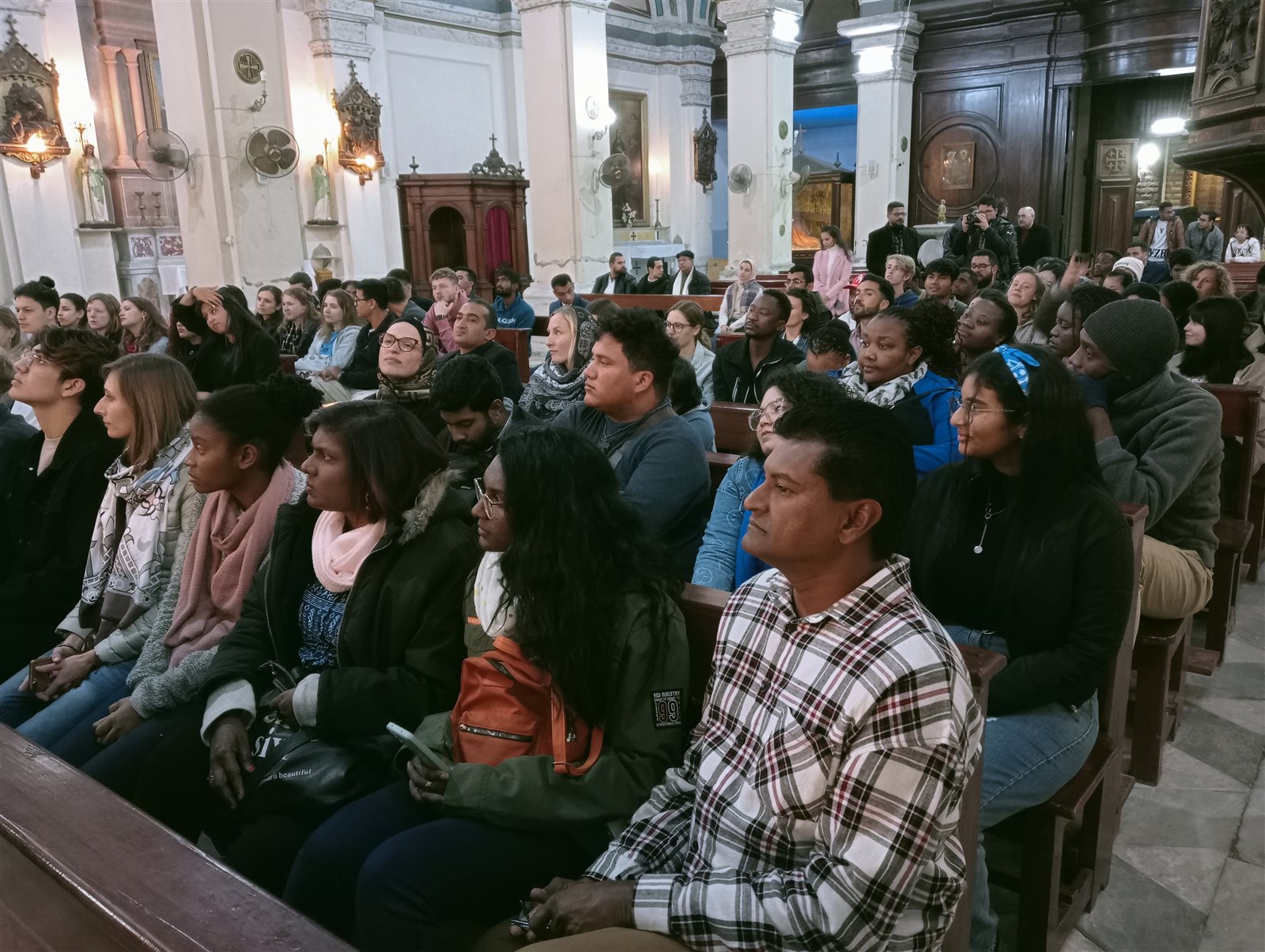 وعقب ذلك توجه طاقم وفريق عمل السفينة لكاتدرائية بورسعيد، والتقوا بالأنبا تادرس مطران محافظة بورسعيد وضواحيها بقاعة أم النور.