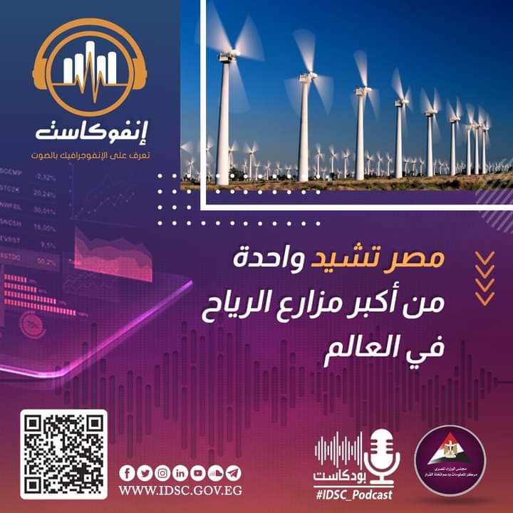 نشر مركز المعلومات ودعم اتخاذ القرار بمجلس الوزراء إنفوجراف جديد عبر صفحته الرسمية على موقع التواصل الاجتماعي فيسبوك تحت عنوان "مصر تشيد واحدة من أكبر مزارع الرياح في العالم".