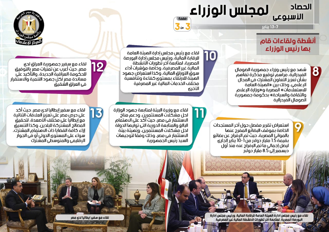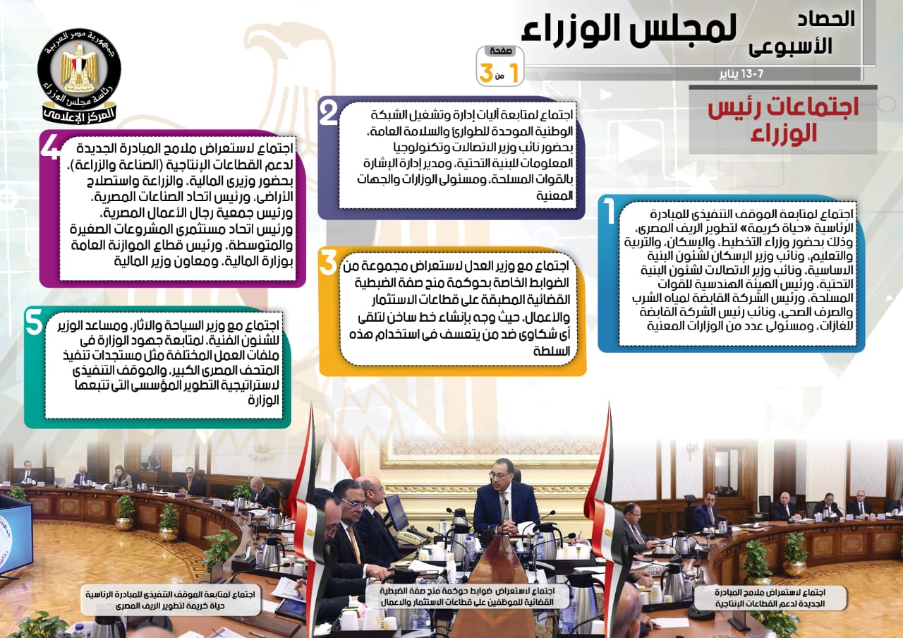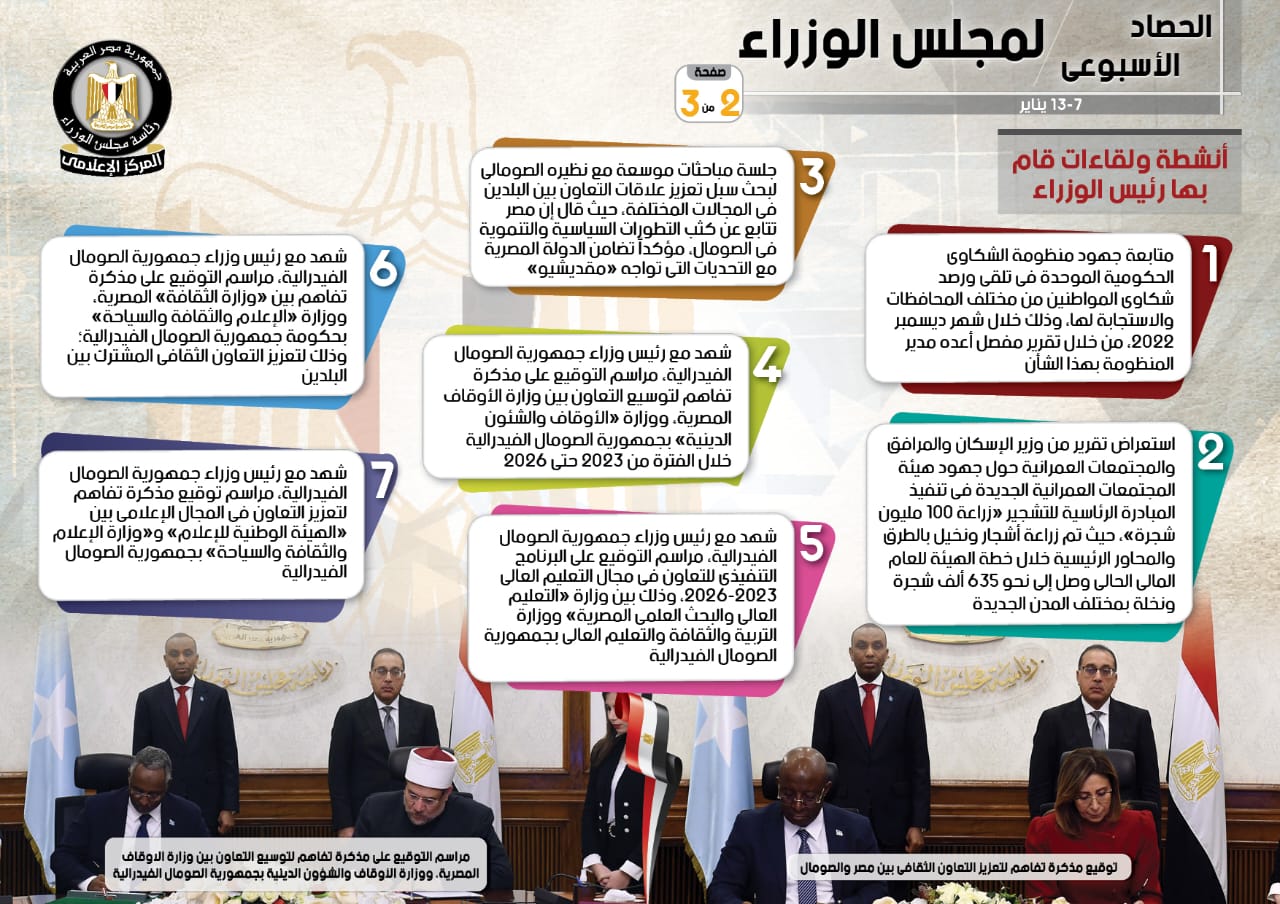 الحصاد الأسبوعي لمجلس الوزراء خلال الفترة من 7 حتى 13 يناير 2023 (إنفوجراف)