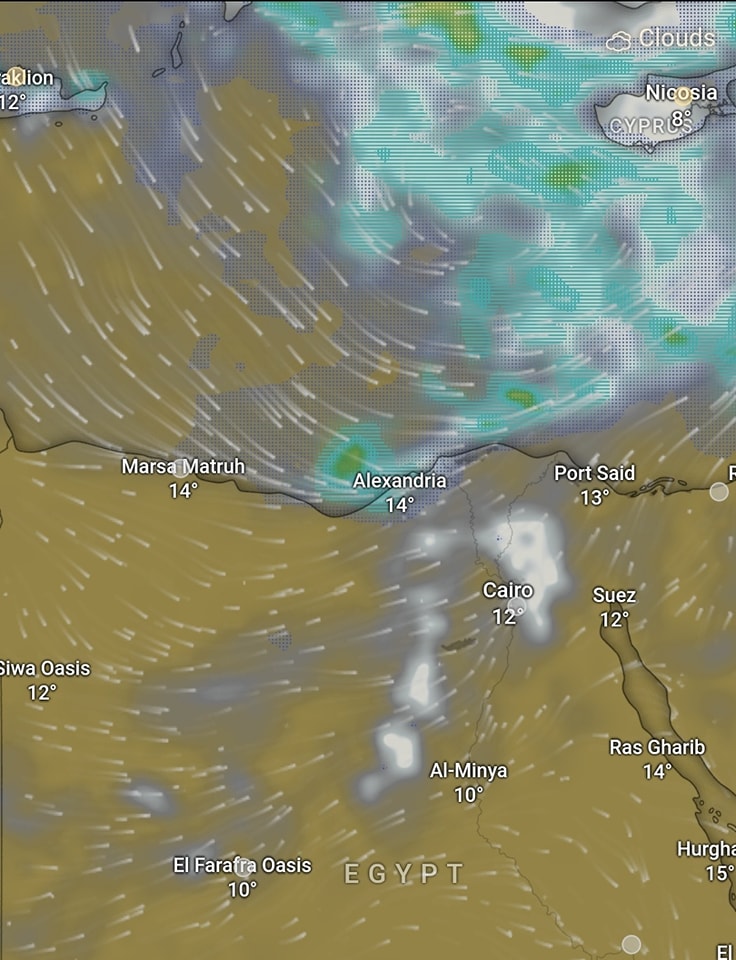 وتوقعت هيئة الأرصاد، سقوط أمطار أمطار متوسطة قد تكون غزيرة ورعدية أحيانا على مناطق من السواحل الشمالية الغربية وشمال الوجه البحري علي فترات متقطعة بنسبة حدوث 60%.