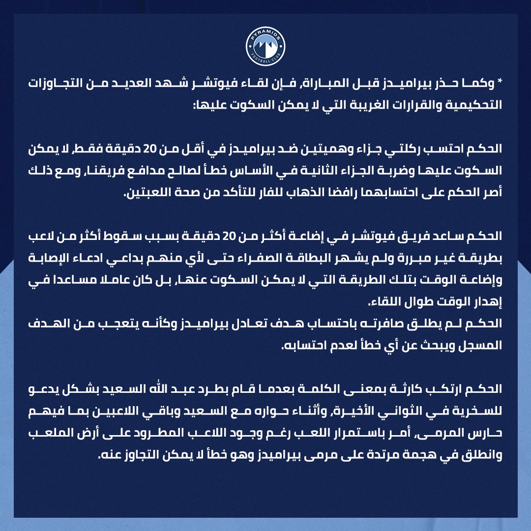 رسالة أحمد دياب لنادي بيراميدز بشأن أخطاء التحكيم