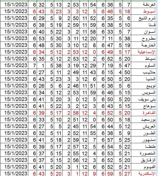 وجاءت باقي مدن الجمهورية كالتالي: