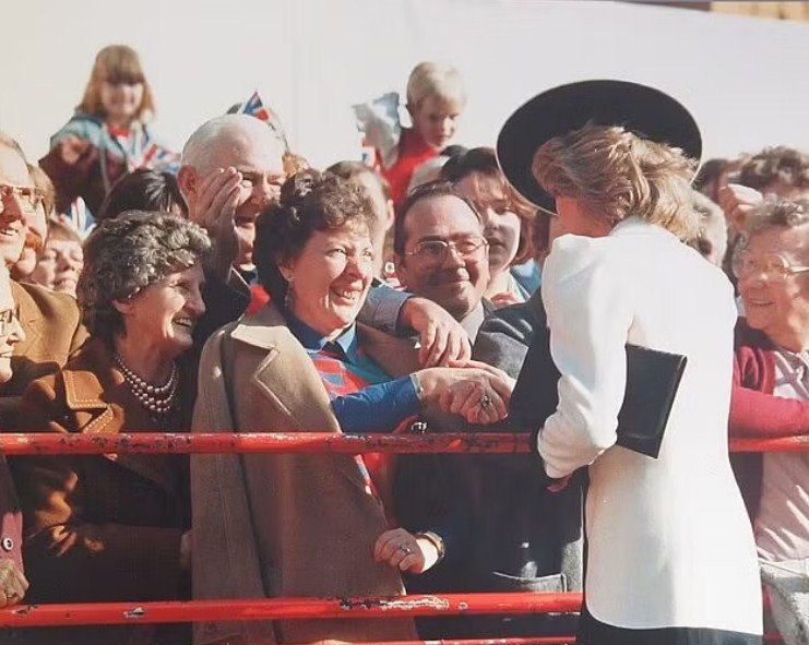 يمكن أيضًا رؤية الأميرة ديانا وهي تُهنئ وتحيي الجمهور، مع صورة يقوم فيها أحد المعجبين بتقبيل يدها.