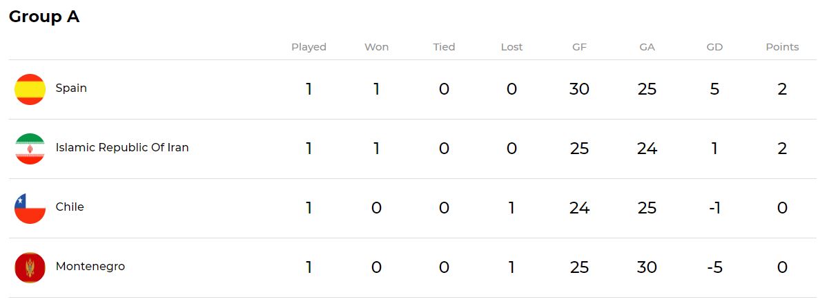 المجموعة الأولى: إسبانيا – مونتينجرو – تشيلي – إيران