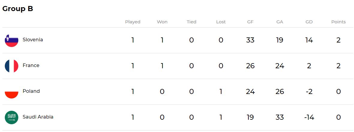 مونديال اليد 2023، ترتيب مجموعات بطولة العالم بعد الجولة الأولى