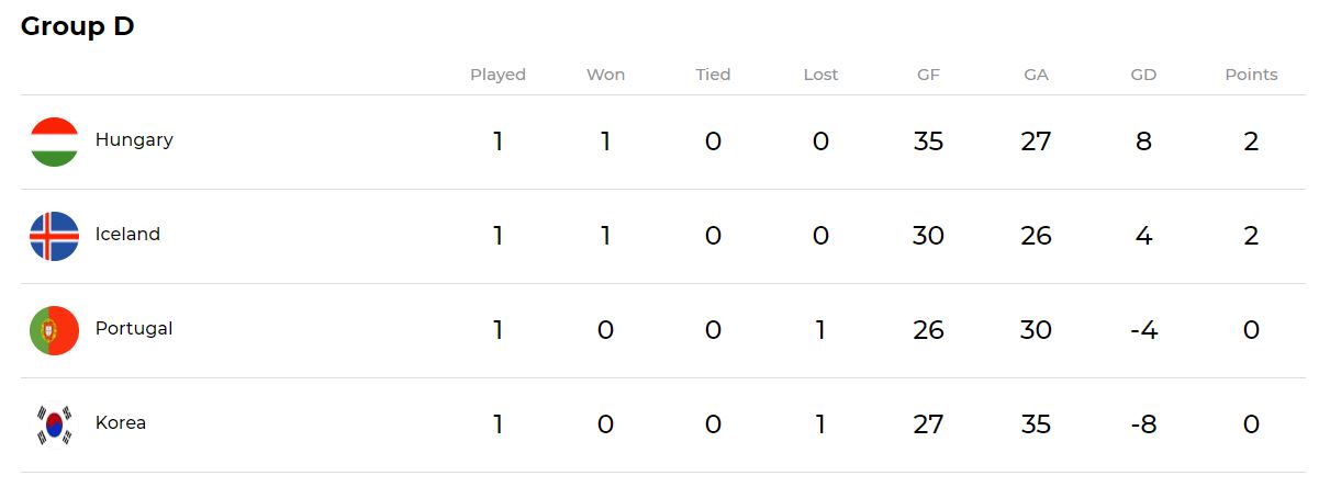 المجموعة الرابعة: آيسلندا – البرتغال – المجر – كوريا الجنوبية