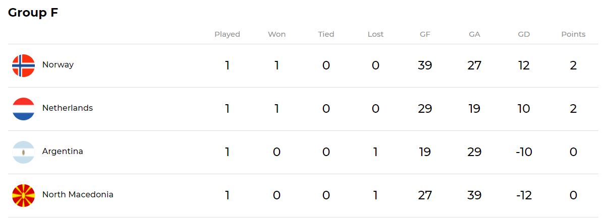 المجموعة السادسة: النرويج – مقدونيا – هولندا – الأرجنتين