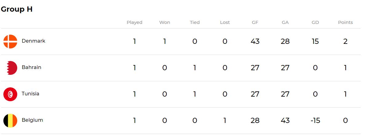 المجموعة الثامنة: الدنمارك – بلجيكا – البحرين – تونس
