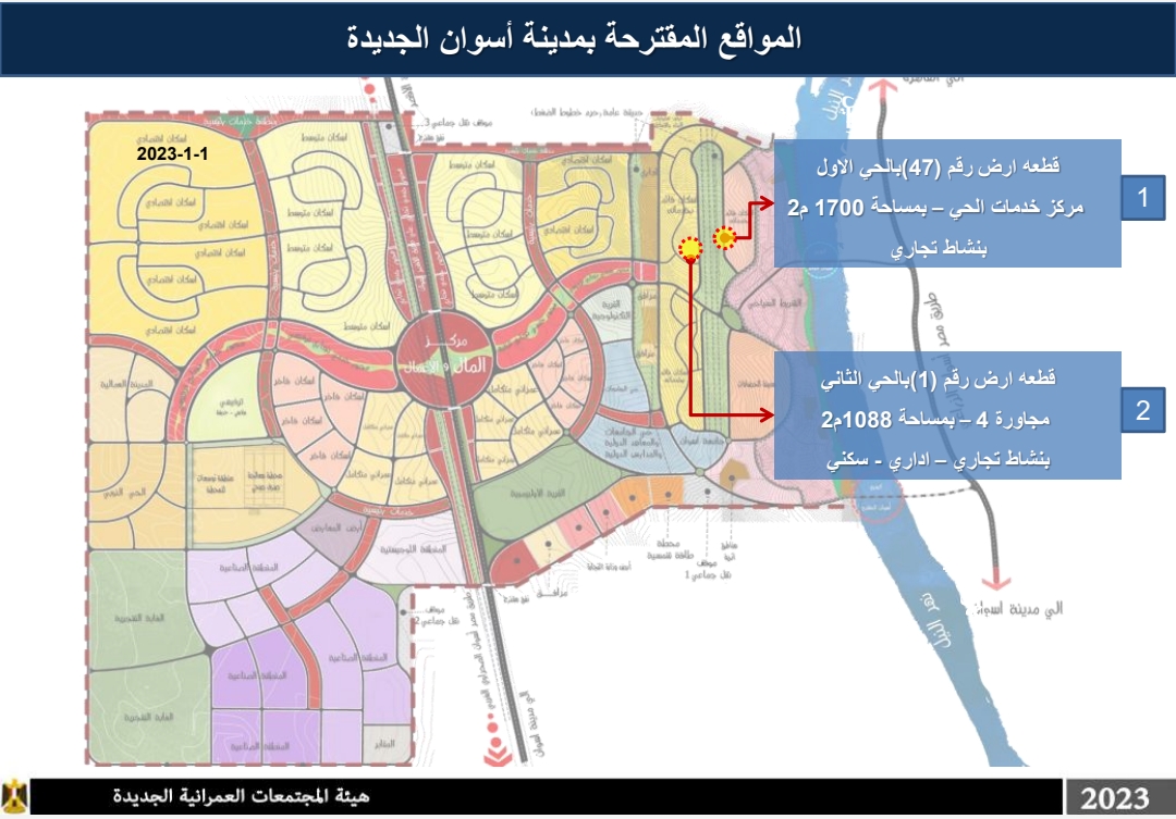 حددت هيئة المجتمعات العمرانية الجديدة قطع الأرض بمدينة أسوان الجديدة بنشاط خدمي: