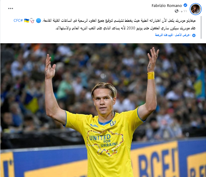 ووفقًا لـ فابريزيو رومانو، خبير سوق الانتقالات في أوروبا، فإن تشيلسي اتفق مع شاختار دونيتسك على ضم ميخايلو مودريك، مقابل مبلع يقدر بـ 100 مليون يورو.