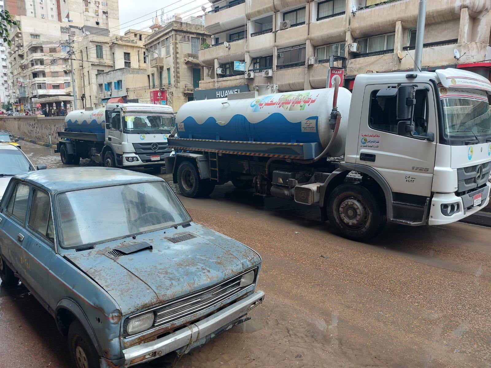 انتشار سيارات الصرف الصحي في شوارع وميادين الإسكندرية
