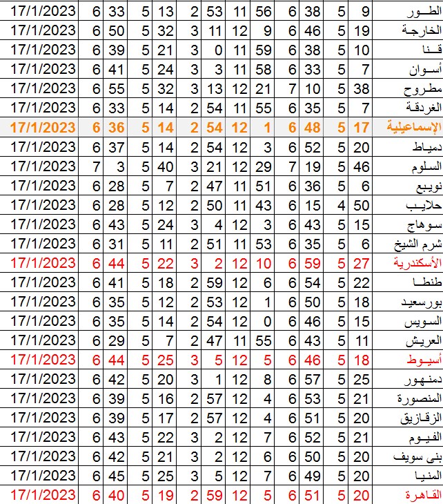 وجاءت باقي مدن الجمهورية كالتالي: