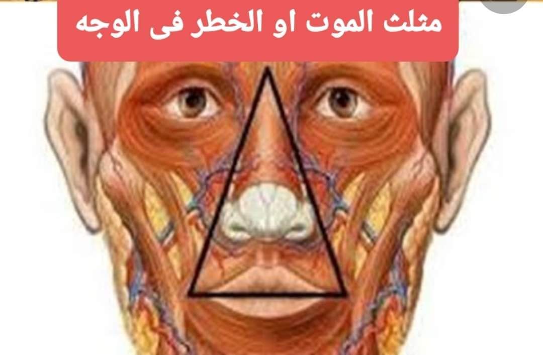 ولفت شوقي إلى أنه في كثير من الأحيان قد لا يوجد بهذه الحبوب عدوى ولكن في بعض الأحيان تحتوى حبوب الوجه على بكتيريا، مشيرا إلى أن مثلث الخطر في الوجه الموضح بالصورة يرسل الدم مباشرة الى المخ وخطر انتشار العدوى في هذا المكان قد تكلف الشخص حياته، وتؤدي إلى موته.