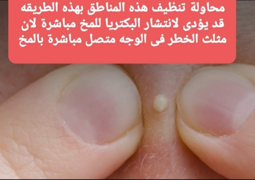 وأوضح الدكتور وليد شوقي إلى ان انتقال العدوى بهذه الطريقة نادر الحدوث ولكنه موجود ومثبت، وللاسف لا احد يربط بين مثلث الخطر في الوجه وانتشار العدوى ولكن تحدث في بعض الحالات، لذا يجب ترك مثلث الخطر في الوجه وشأنه وان كان هناك عدوى بكتيريه ينصح بالتوجه لطبيبك.