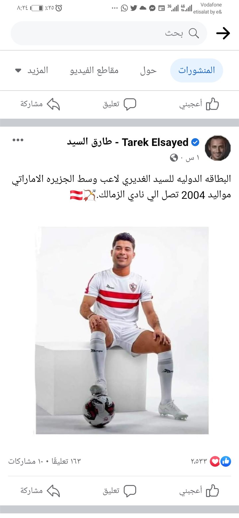 ونشر طارق السيد عبر صفحته الرسمية على موقع التواصل الإجتماعي فيس بوك صورة للسيد الغديري وكتب: البطاقه الدوليه للسيد الغديري لاعب وسط الجزيره الاماراتي مواليد 2004 تصل الي نادي الزمالك.