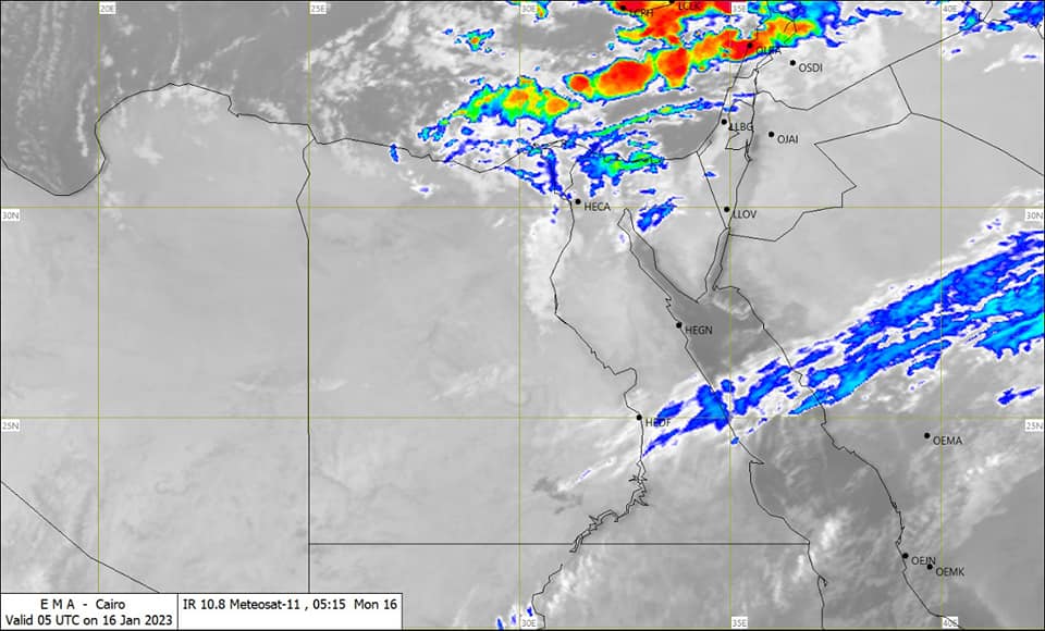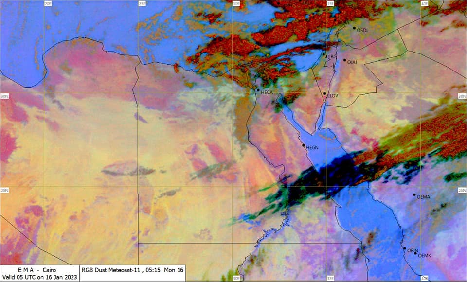 كما توقعت هيئة الأرصاد الجوية أن يكون الطقس اليوم على جنوب سيناء مائل للبرودة معتدل نهارا، كما توقعت أن يسود اليوم طقس بارد ليلا على القاهرة الكبرى والوجه البحرى والسواحل الشمالية الغربية والسواحل الشرقية، وجنوب الصعيد وجنوب سيناء وسلاسل البحر الأحمر.