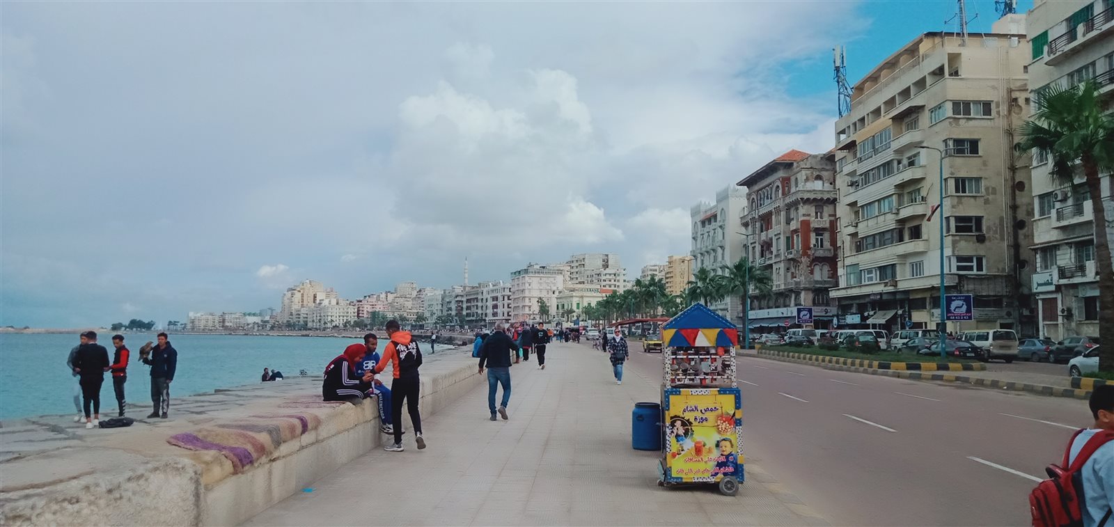 كما تواجد أهالى المحافظة على طريق الكورنيش للاستمتاع بطقس المدينة الساحلية وسط تواجد مسئولى وتنفيذى احياء المحافظة لرفع تراكمات مياة الأمطار من الميادين.