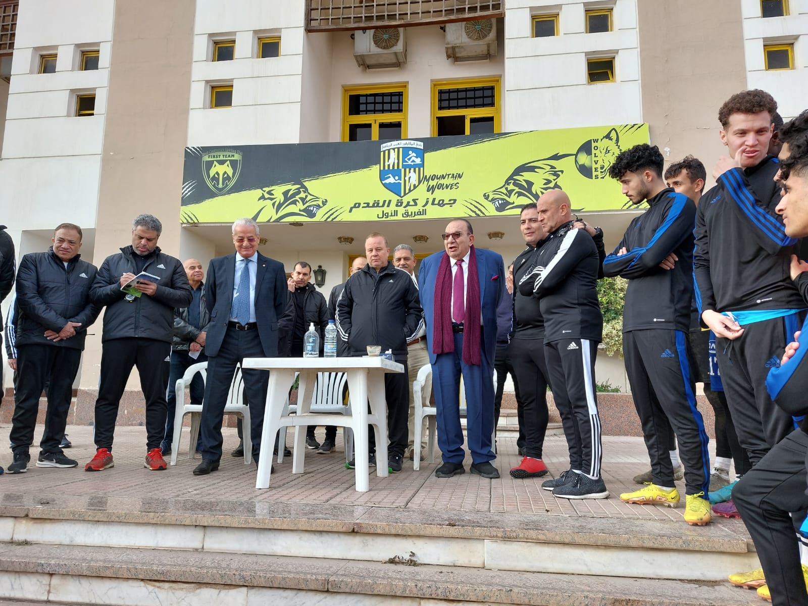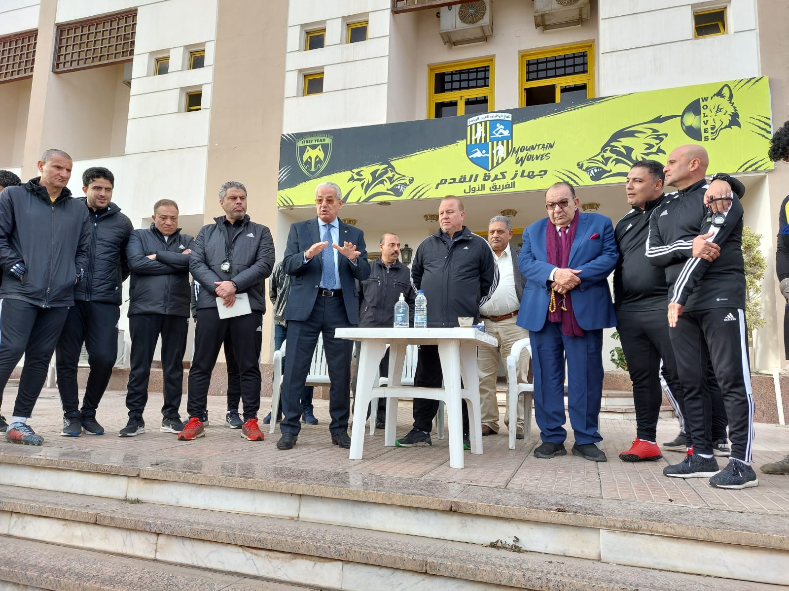 رئيس المقاولون العرب يجتمع مع اللاعبين قبل مواجهة أسوان
