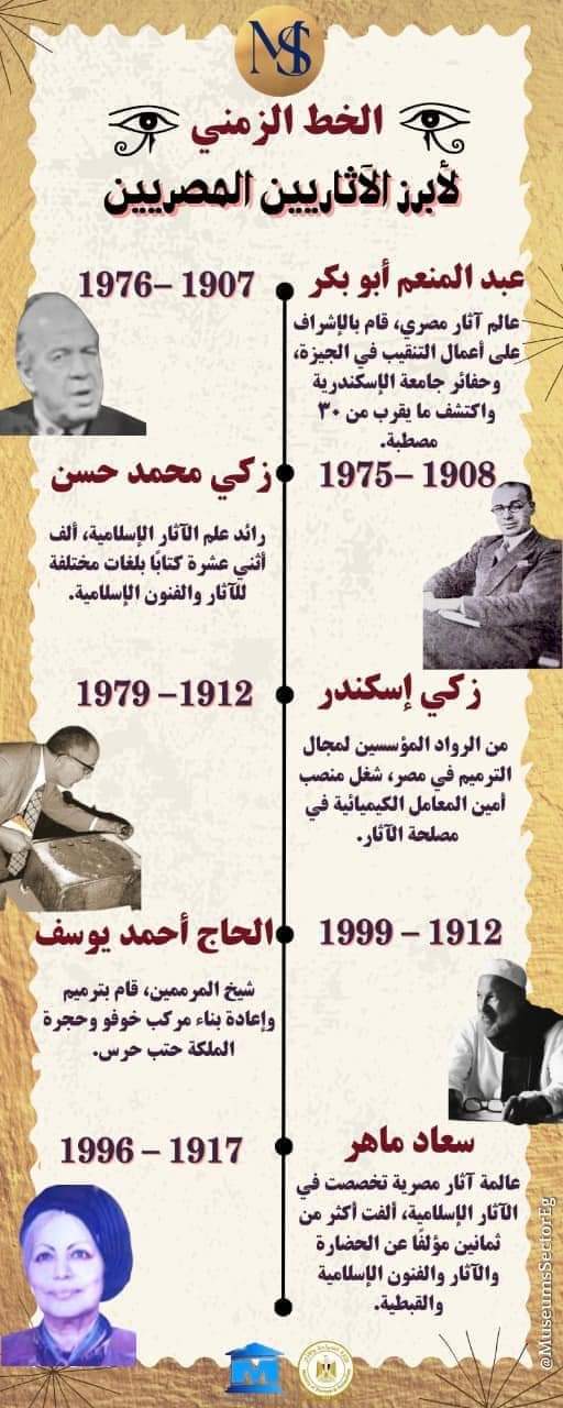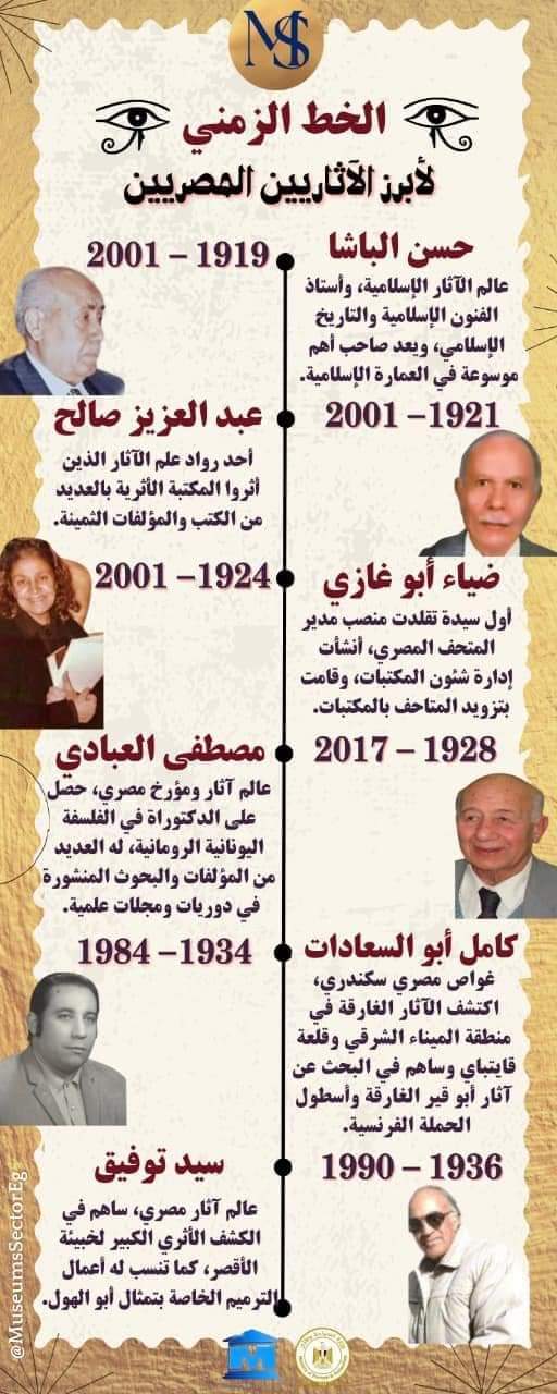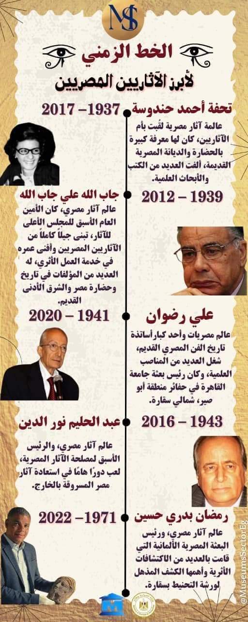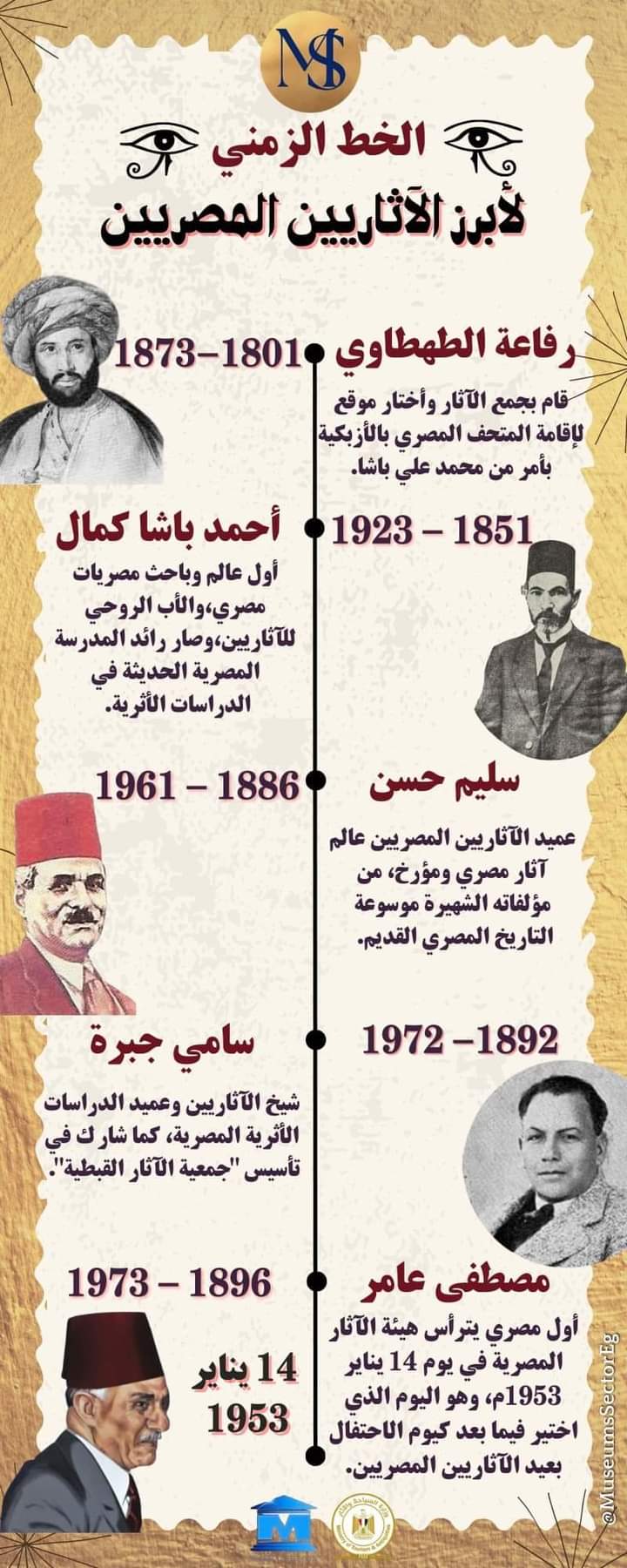 ونشر قطاع المتاحف بوزارة السياحة والآثار عبر صفحته الرسمية على مواقع التواصل الاجتماعي فيسبوك، صور للآثاريين المصريين معلقًا: «نحتفل معكم بإحياء ذكرى أهم وأبرز الآثاريين المصريين تكريمًا لهم وتقديرًا لجهودهم البارزة في خدمة العمل الأثري ولإسهاماتهم الجليلة في نشر هذا العلم».