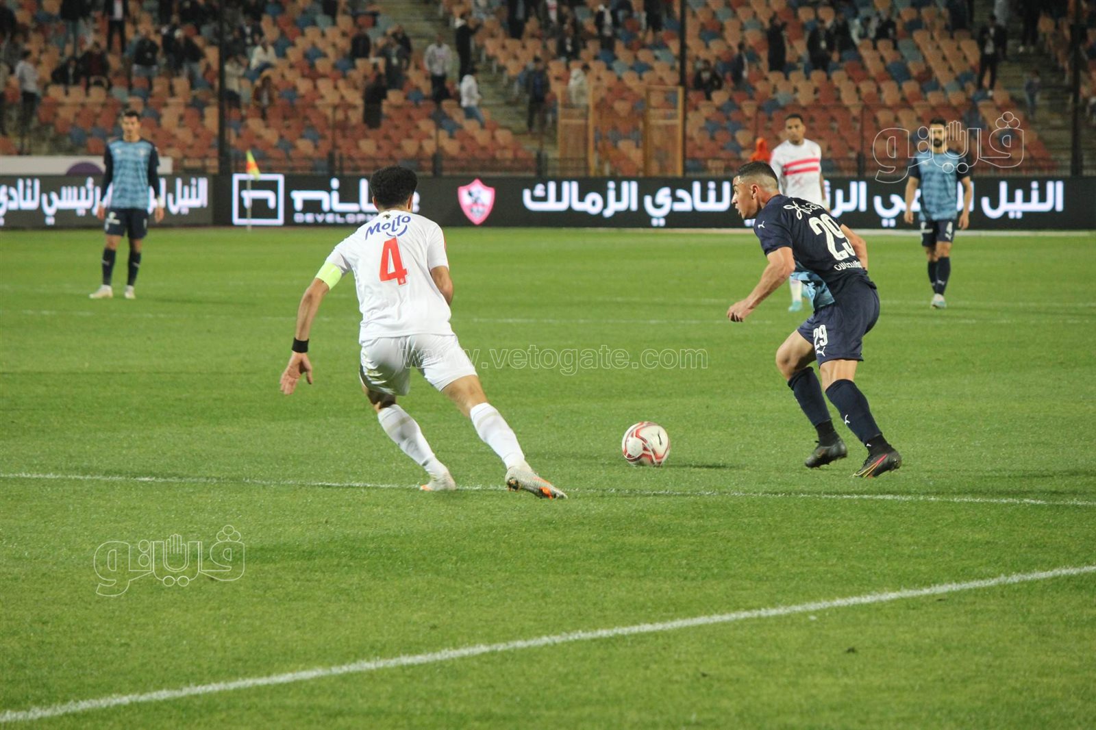 بعدها تأثر بيراميدز بالنقص العددي وفشل في خلق فرص على مرمى الأبيض لتعويض التأخر بهدف، وسط محاولات زملكاوية للاعتماد على الهجمات المرتدة وانطلاقات زيزو والجزيري واستغلال اندفاع لاعبي بيراميدز والنقص العددي، إلا أن جميع المحاولات انتهت بالفشل لينتهي الشوط الأول بتقدم الزمالك بهدف نظيف.