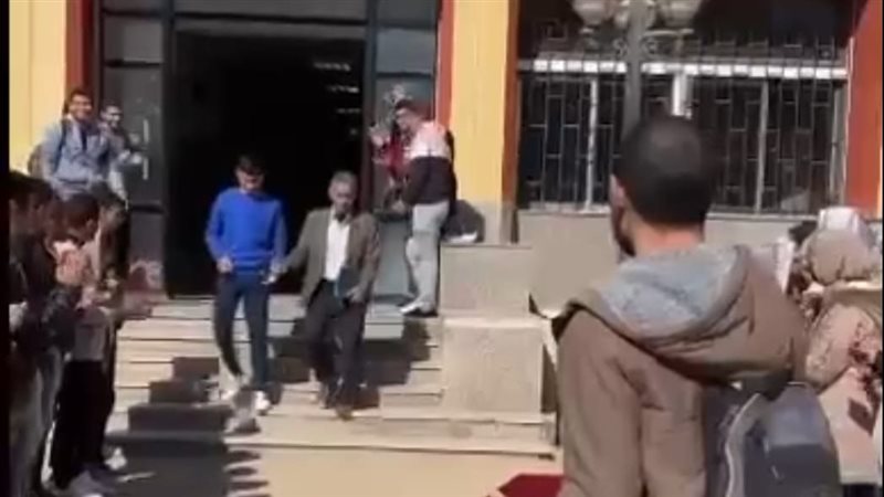 واصطفت مجموعات من الطلاب بكلية الصيدلة في جامعة بني سويف، لتوجيه الشكر إلى أستاذهم بالكلية، واستقباله بممر شرفي داخل مبنى الكلية، ليعبروا عن امتنانهم له على ما بذله طوال فترة دراستهم، حيث تجمعوا في صفين طويلين داخل الكلية، ليفاجئوا أساتذهم.