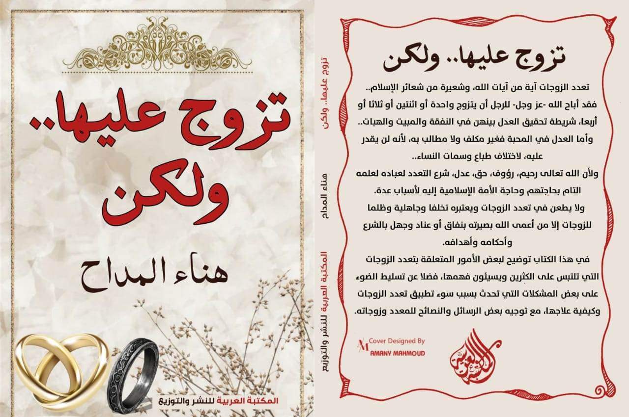 يشارك كتاب "تزوج عليها ولكن" للكاتبة هناء المداح، والصادر عن المكتبة العربية للنشر والتوزيع في معرض القاهرة الدولي للكتاب الذي سيبدأ في 25 يناير الجاري وينتهي في 6 فبراير المقبل.